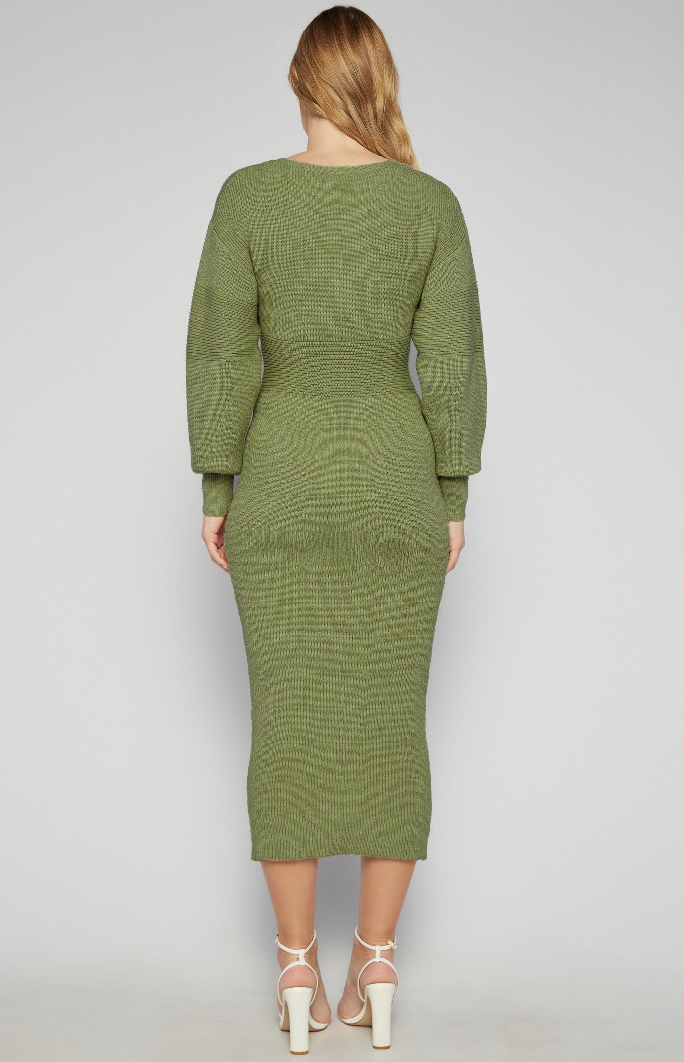 $79.99CONTRAST PANEL BUBLE SLEEVE KNIT MIDI DRESS