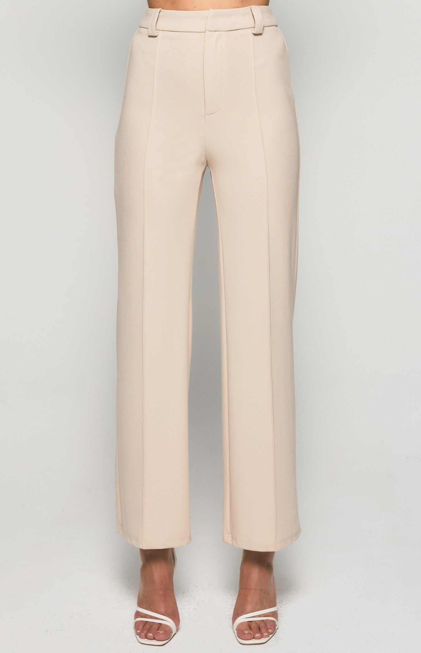 STRETCH FABRIC HIGH WAISTED WIDE LEG PANTS -